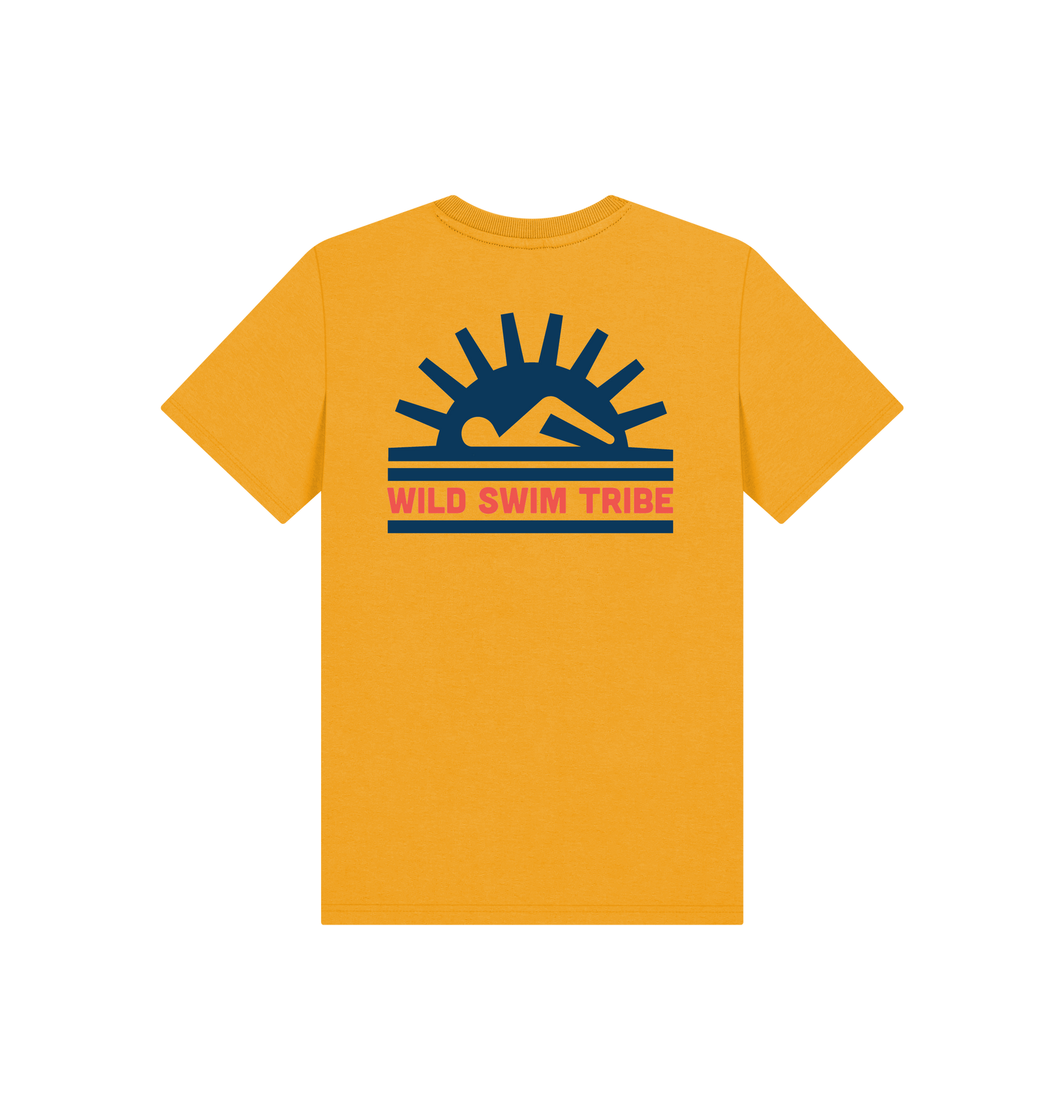 For children with a love of wild swimming, our Kids T-shirts are designed for adventurers. Made using renewable energy and shipped from the UK, these t-shirts let your little ones make a statement about their love for wild swimming while keeping their style effortlessly casual. This tee features our sun design, which has been printed using water-based inks. These T-shirts bring together a relaxed style alongside our commitment to sustainable fashion. Whether they’re splashing around or taking on their next big swim, join the tribe and bring some wild swimming energy to your mini swimmers wardrobe