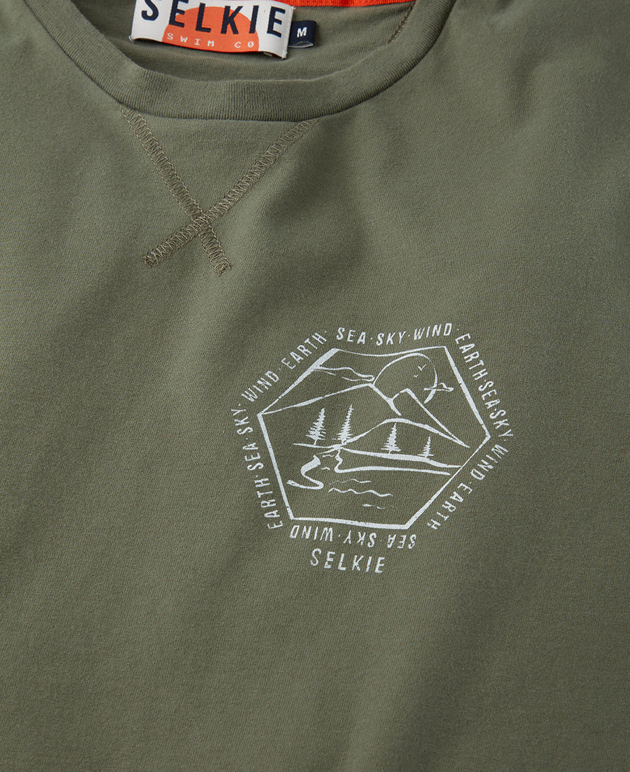 The Selkie men’s crew neck is a slim fit tee. It is made from 100% organic cotton and feels super soft to the touch. Our collection of bespoke graphics are inspired by our open water heritage. Water runs through our veins and the use of waves and ripples inspires our graphics collection.