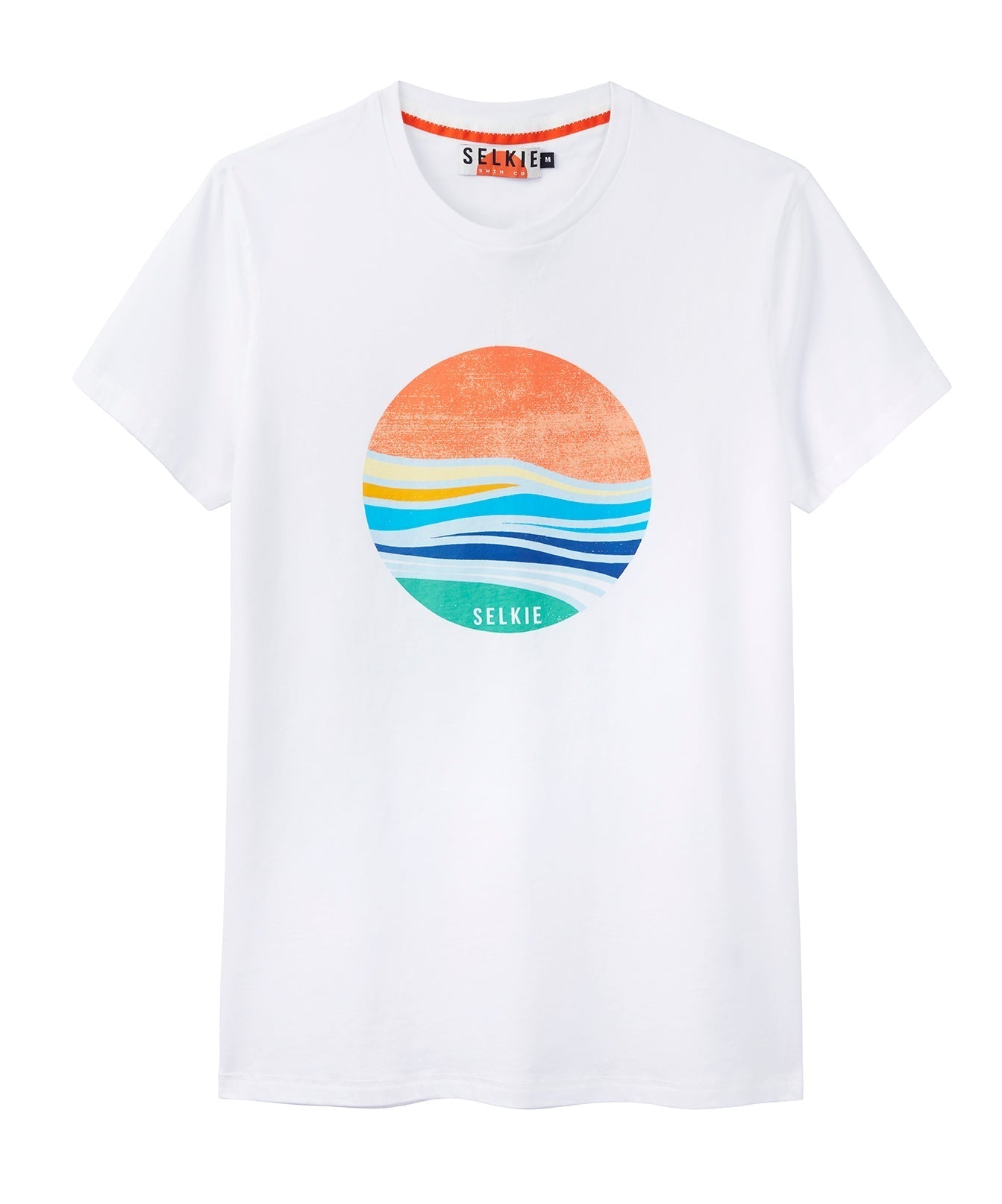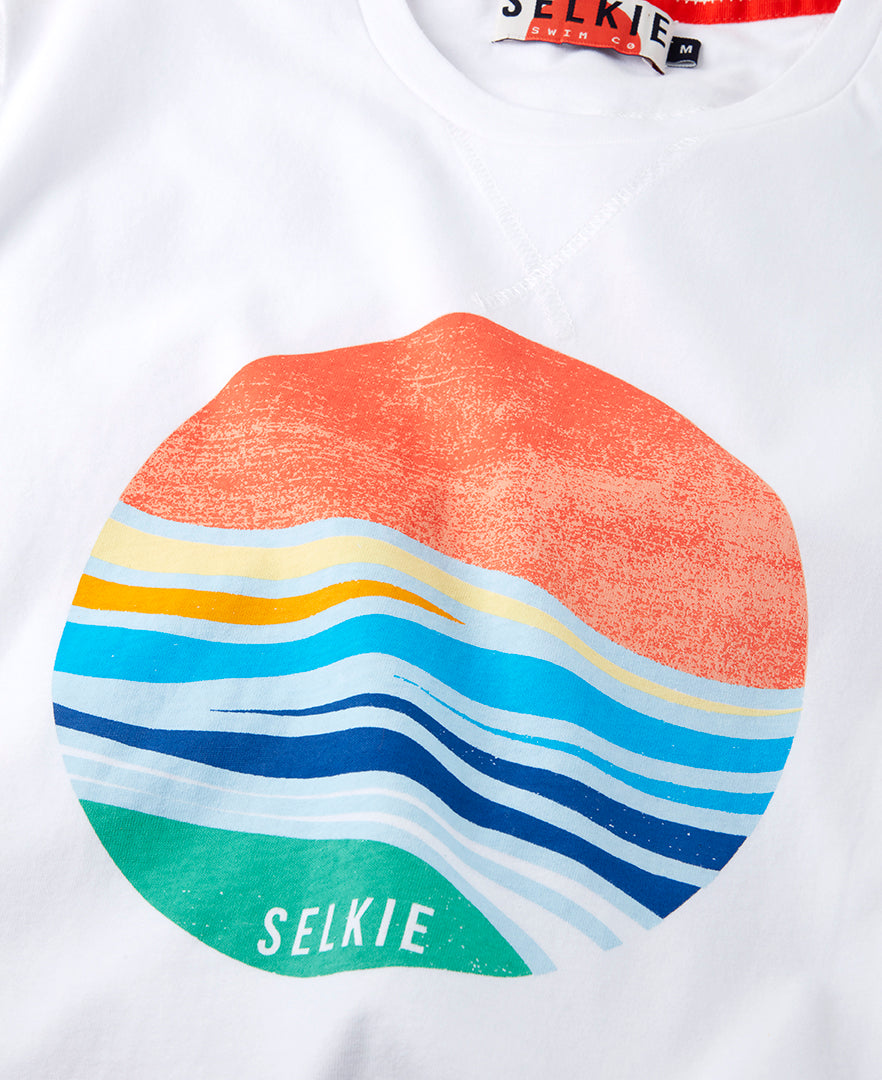 Waves and Sunset Tee graphic inspired by our open water swimming heritage. A white, slim fit tee made from the softest organic cotton with crew neck, it’s designed for those who swim in untamed rivers, lakes and seas to wear with pride.