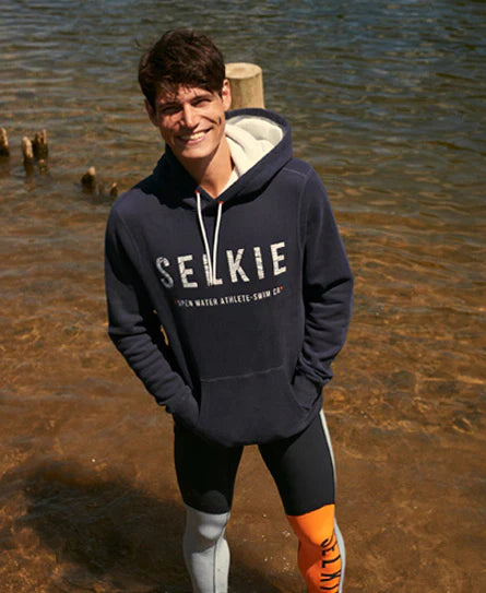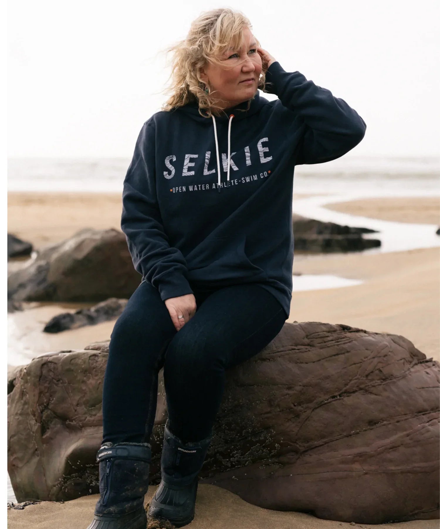 Perfect for layering with Selkie tees or swim wear, our classic fit popover hoodie is made from the softest cotton, with a brushed cotton back and peached face. The hood is lined in waffle jersey while the kangaroo front pocket is lined in jersey for extra warmth. Available in grey or navy, it’s a go-to piece for any outdoor activity. Wear it fitted or oversized! you choose.