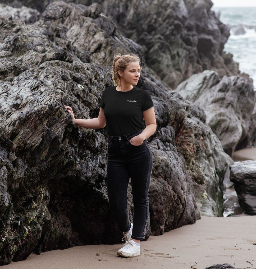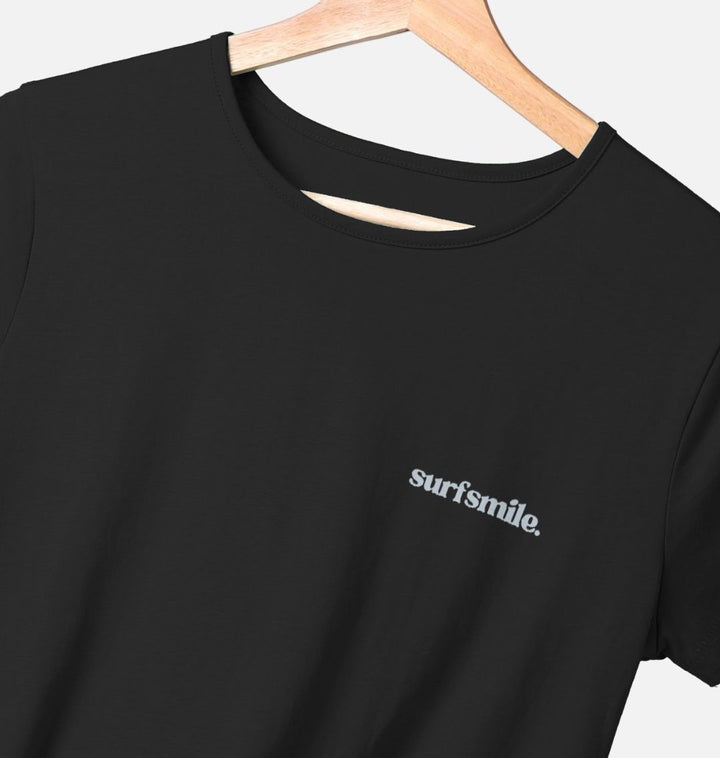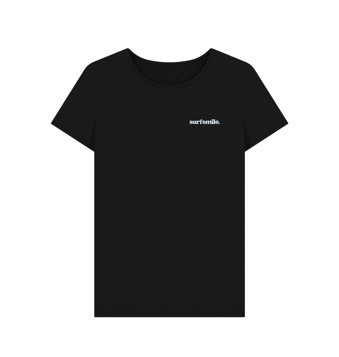 The Classic Logo Women’s Organic Crew Neck T-Shirt in black combines effortless style with a meaningful purpose. Made from soft, high-quality organic cotton, this T-shirt offers a comfortable, relaxed fit perfect for everyday wear. Featuring the signature SurfSmile logo, it’s more than just a stylish choice – every purchase supports SurfSmile's impactful programs. Your support helps fund their Adult Surf Therapy, Carers Surf Club, and the innovative Hang10 Surf to Work initiative, all designed to promote wellness and healing through the power of surfing. Wear it with pride, knowing your purchase is making a real difference.